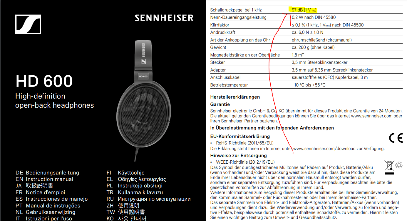 HD600: 665.27mW @300ohm 혹은 14.12 Vrms