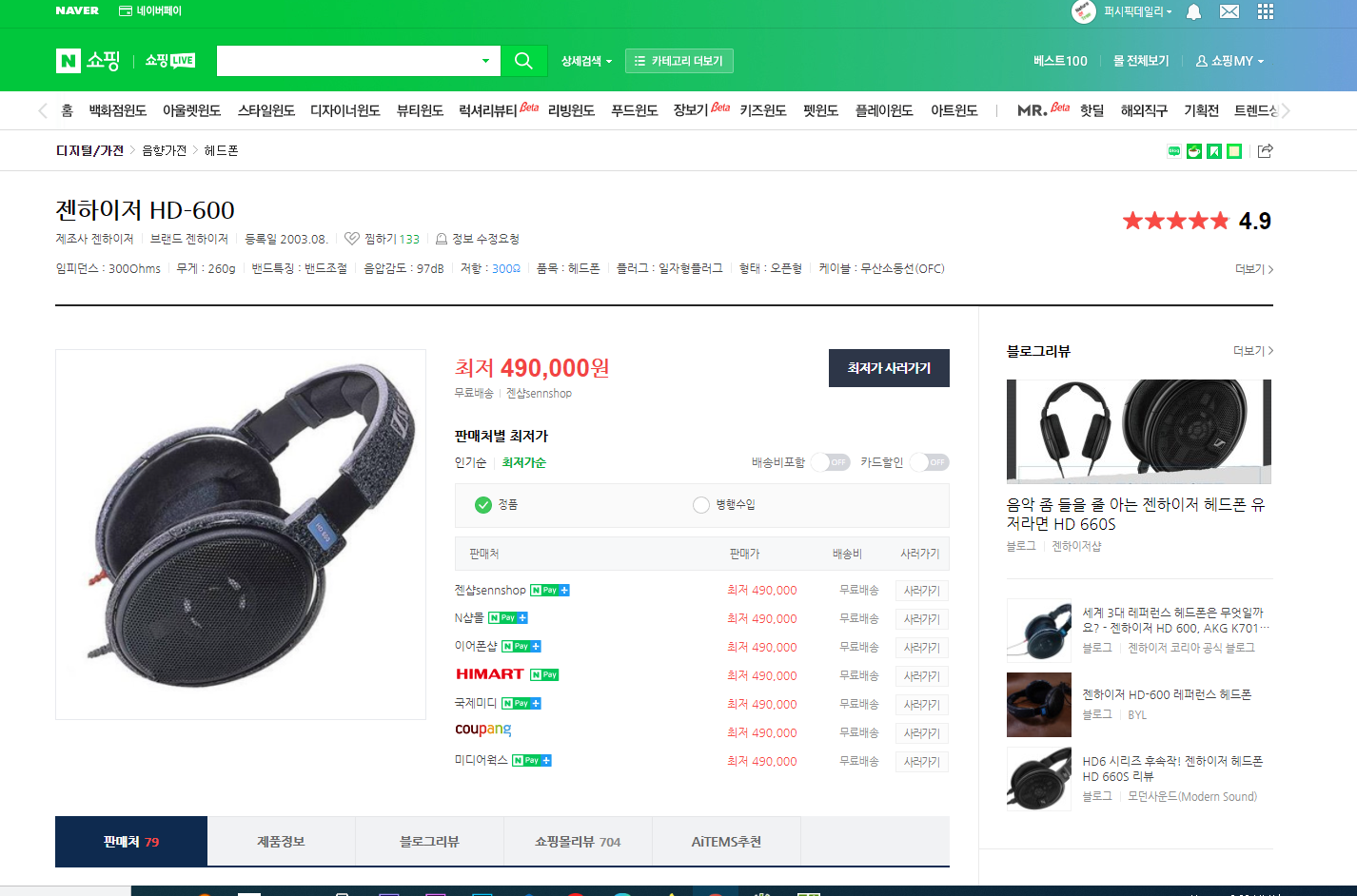 지금까지도 21년 4월 기준 네이버최저가 49만원대를 유지하고 있을 정도로 매우 비쌉니다. 거의 50만원이죠.