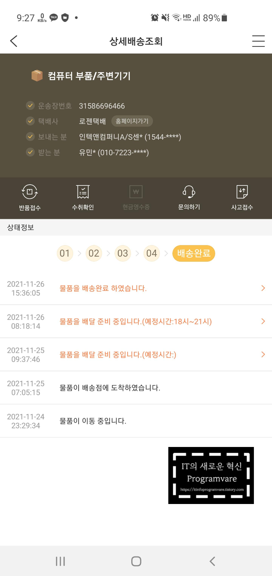 (택배운송장은 로젠택배 앱을 설치하여 확인하였습니다. 이 점 참고 바랍니다)