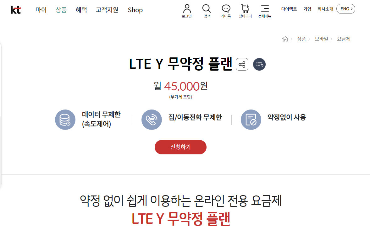 1. 무제한이나 100gb이상 고용량 요금제는 메이저 통신사 가격비교 요망