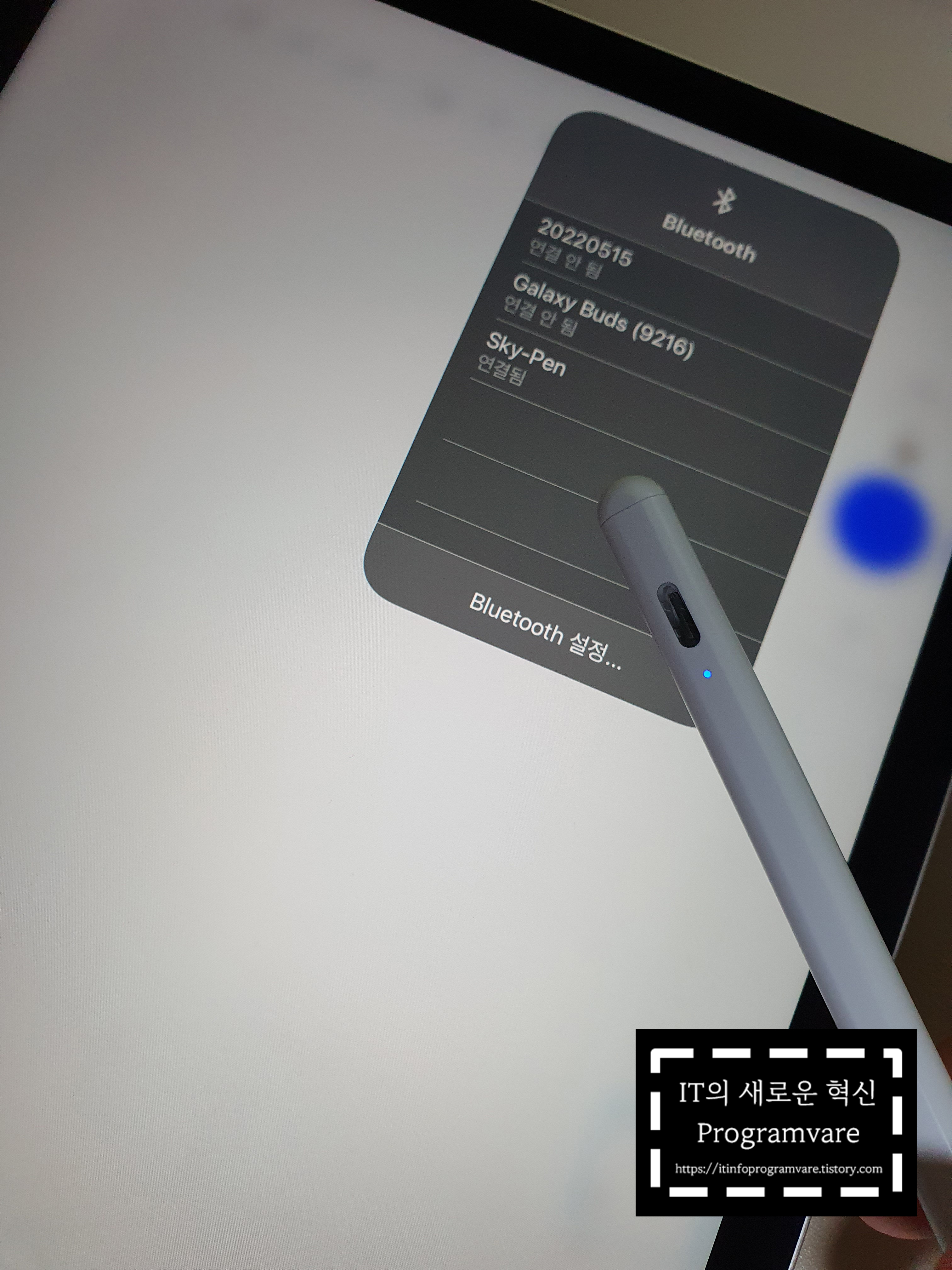 2. 아이패드 블루투스 항목에 가서 Sky-pen 연결한다