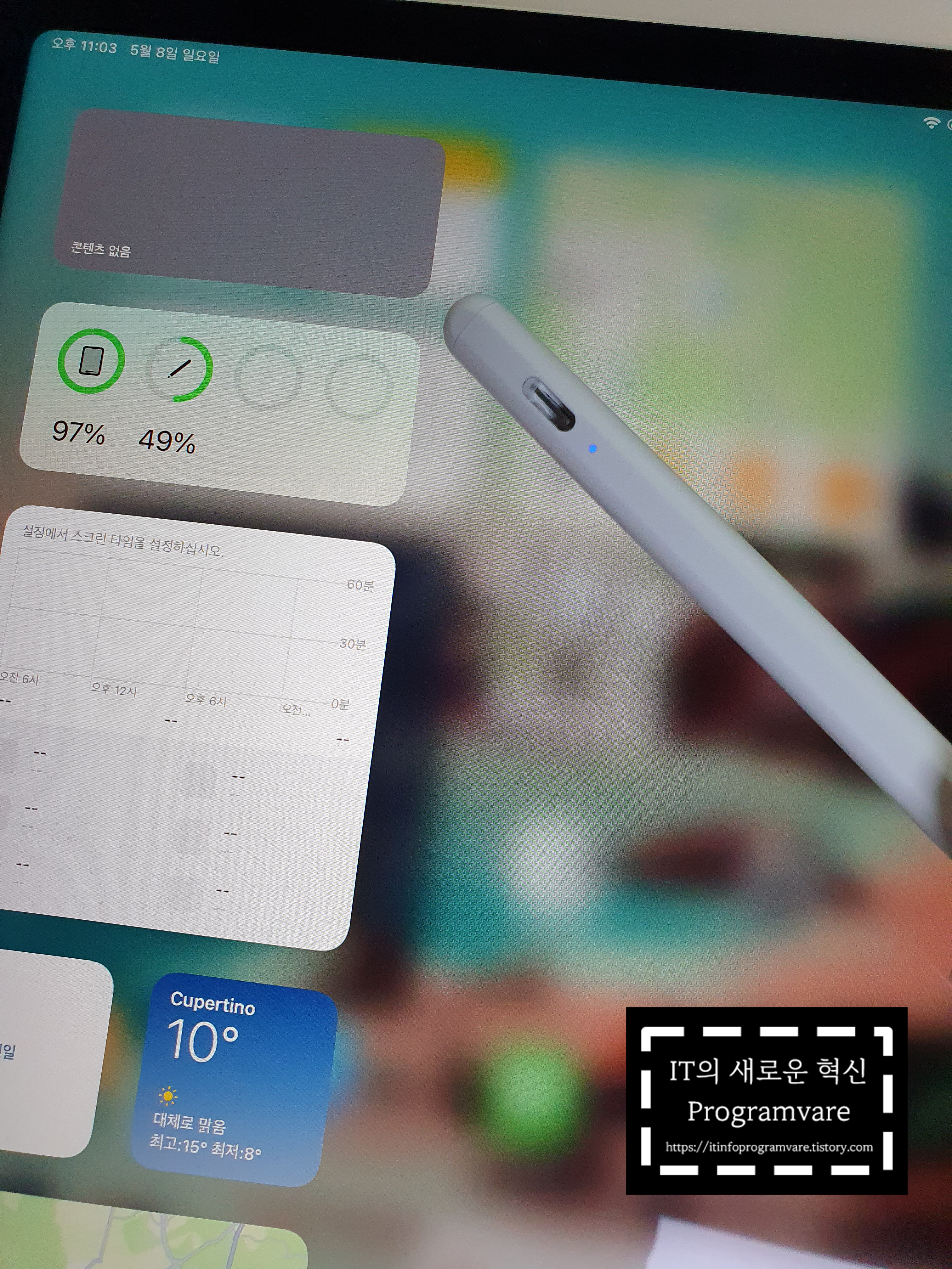 이때 배터리 상태도 심상치 않았습니다. 5초만에 71%되었다가 49% 되었다가 랜덤으로 배터리 수치가 바뀌며 펜슬이 서서히 따뜻해지기 시작합니다. 내부 합선은 아니겠지? 이때, 바로 사용중단하고 짭플펜슬 전원종료하였습니다