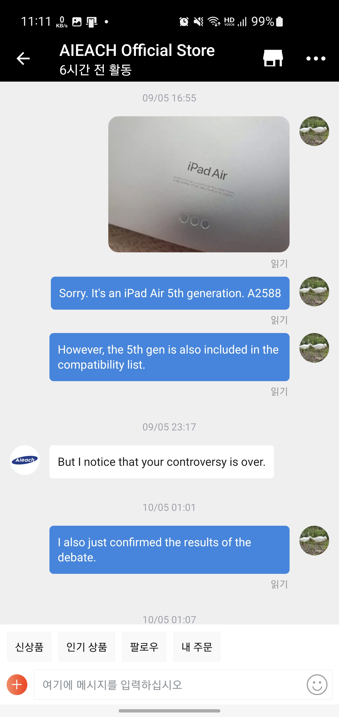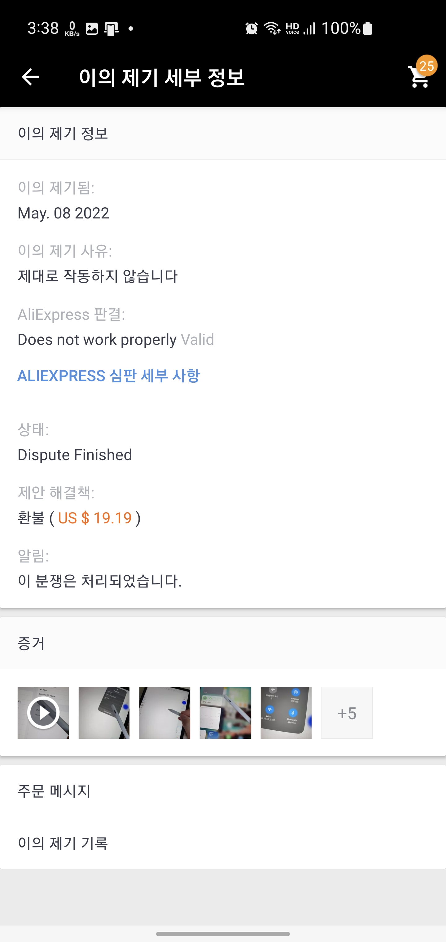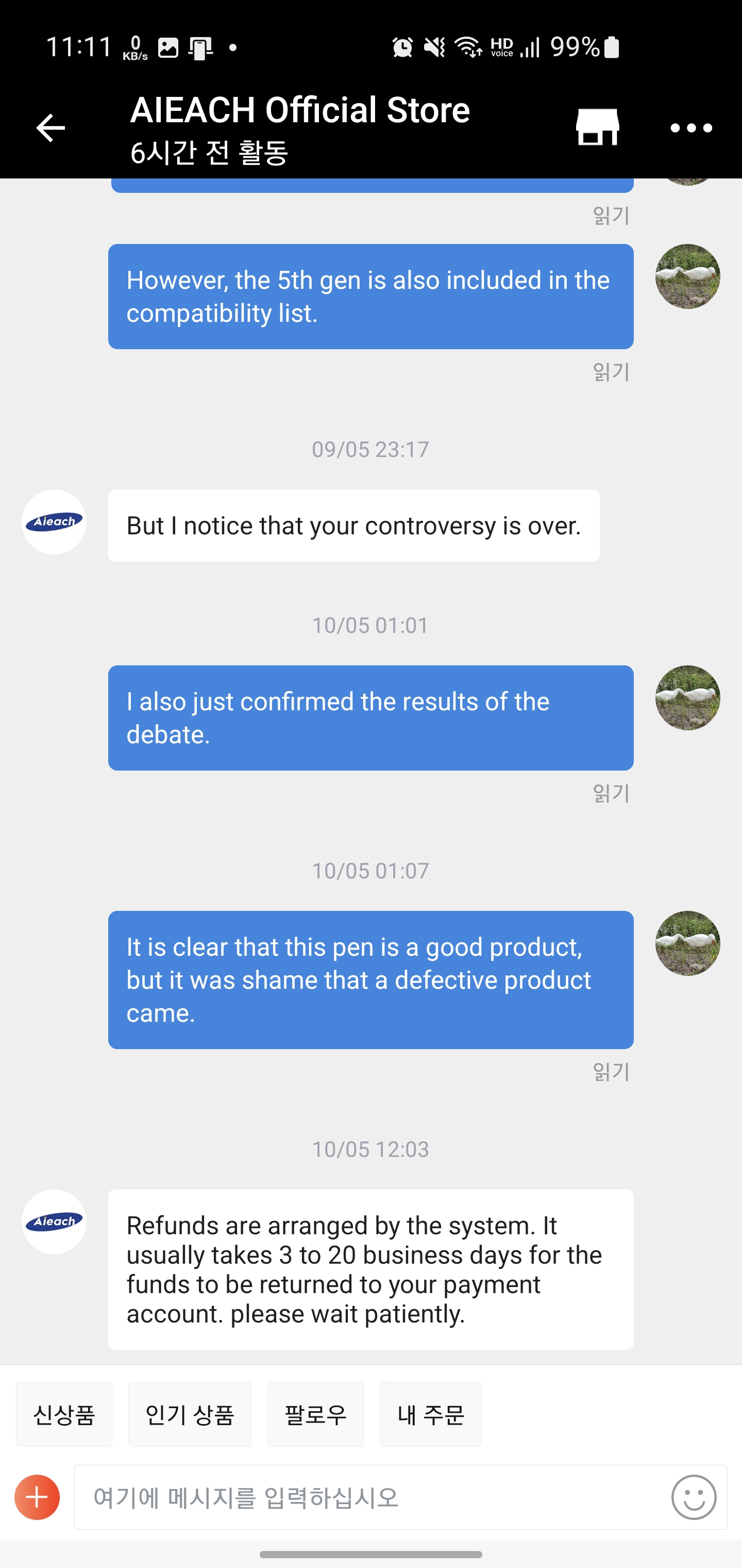 결론은 증거 제출 후 2-3일안에 판매자가 아닌 알리익스프레스 측에서 바로 환불진행 결과 나왔습니다!