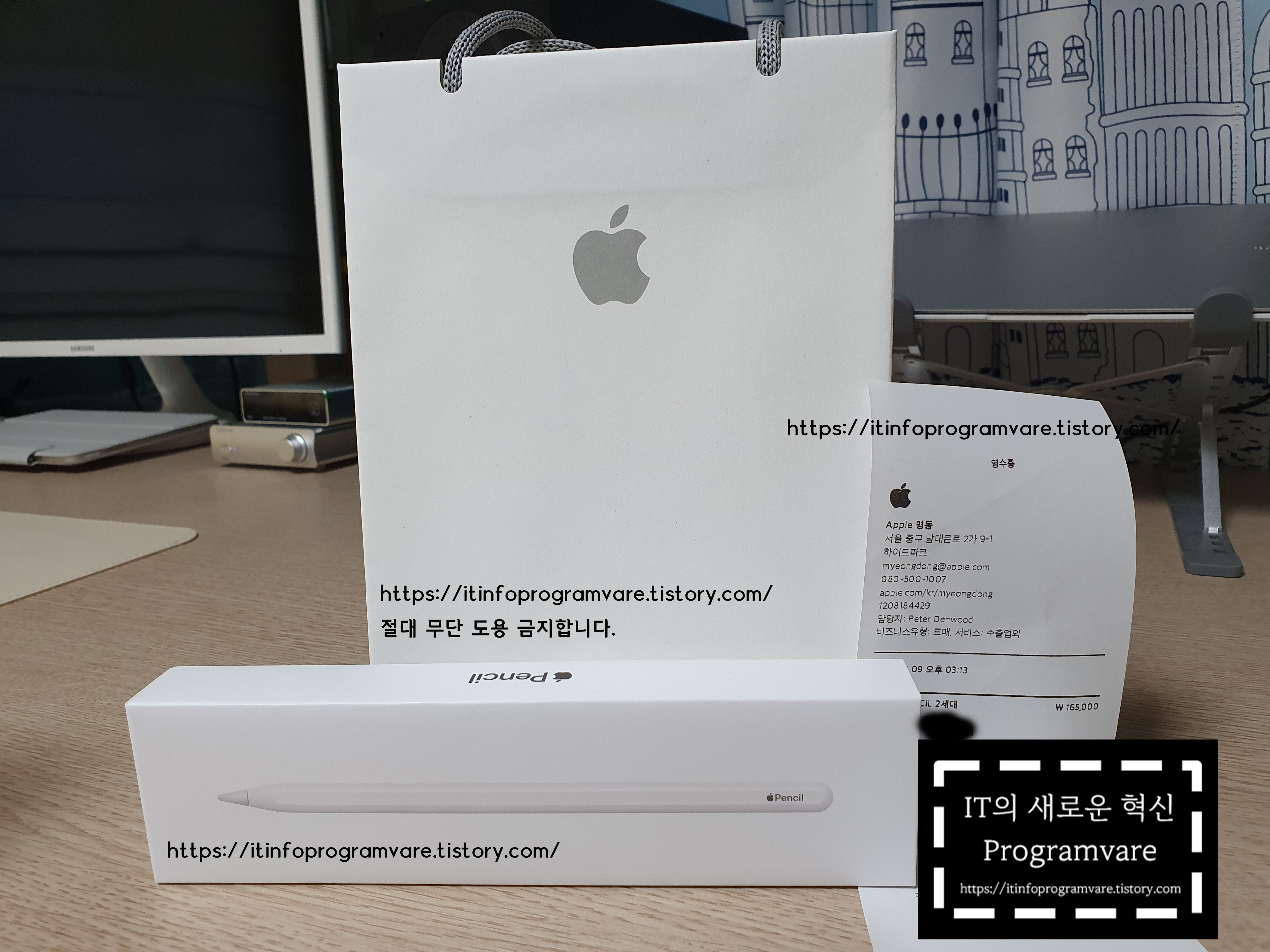 오프라인으로 가서 구매하였더니 저 애플 쇼핑백을 얻을 수 있었습니다. 일종의 일석이조가 되었군요?