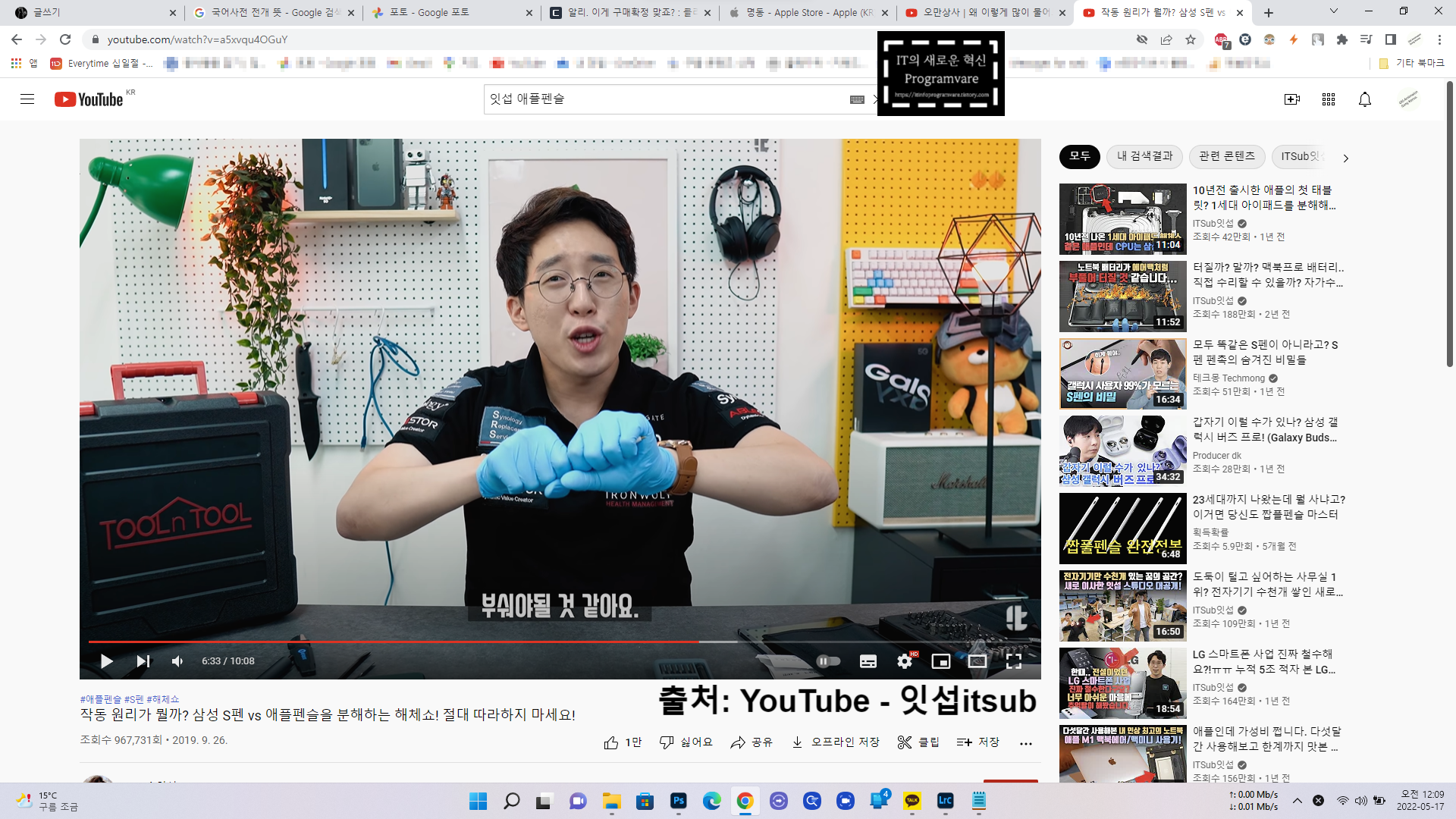 예전에는 유튜버 잇섭님이 정품 애플펜슬 분해를 위해서 부수었다면 추후에 저는 짭플펜슬을...?
