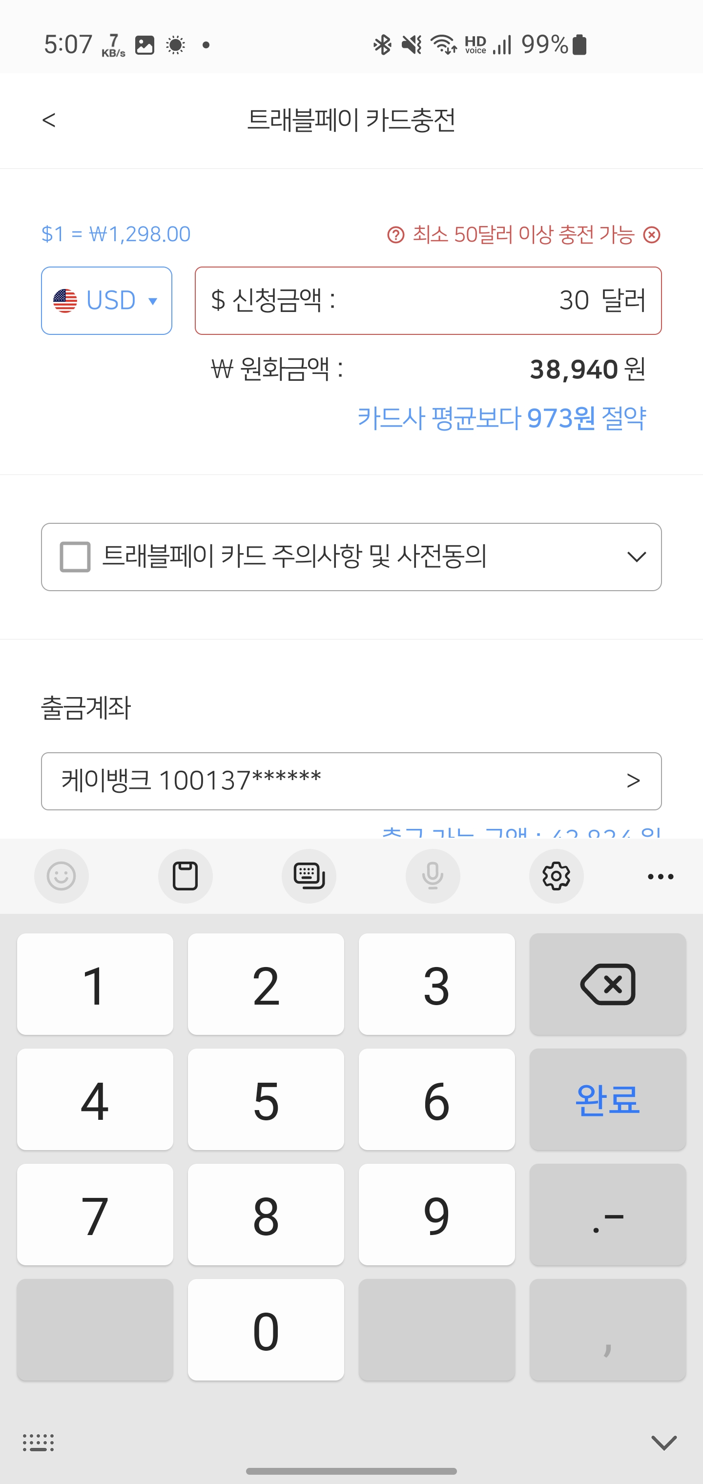 VISA와 협약으로 인하여 수수료도 무료임에도 불구하고 굳이 왜 50달러 이상 충전을 가능하게 해 놓았는지 잘 모르겠습니다. 수수료는 무료일지라도 자체 부담 환율 수수료의 부담 때문에 그런것일까요? 그래도 최소 USD $50.00은 잠깐 해외직구하기에는 부담스러운데 이 부분 많은 유저분들이 원하는 방향으로 빠르게 해결되었으면 좋겠다는 개인적인 마음입니다.
