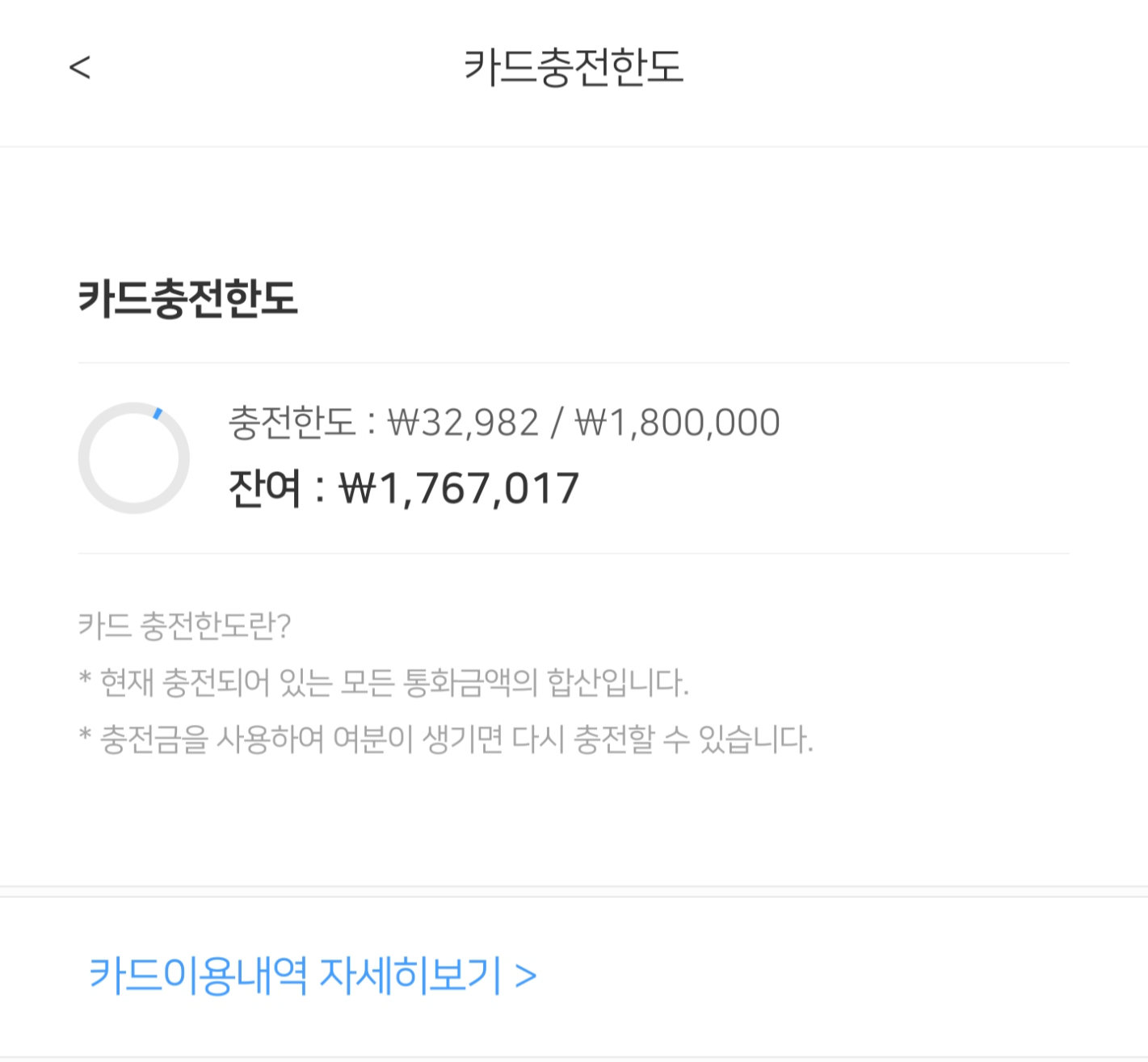 카드 충전한도는 미화 USD뿐만 아니라 모든 통화의 금액이 반영됩니다. 고로 본인이 충전한 통화들의 금액을 원화로 환산하여 한꺼번에 결괏값(금액)이 나오는 방식입니다.