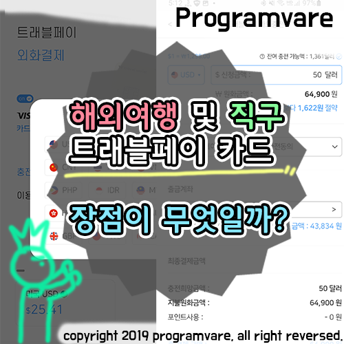 위와 같이 카드발급과 트래블페이 외화선불카드의 장점들을 열거해보았습니다. 이 블로그의 모든 내용들은 저의 주관적인 입장이 포함되었으며 개개인마다 다르게 느낄 수 있는점 참고해주시면 감사하겠습니다.