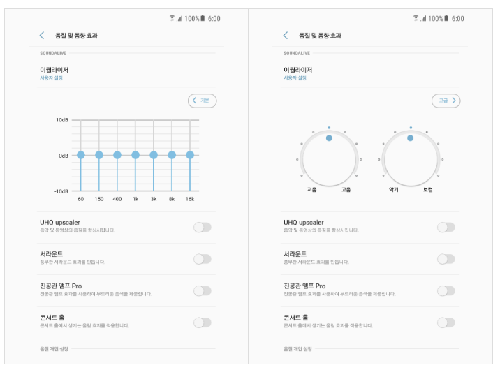 예전 삼성 갤럭시 스마트폰에 이어폰을 끼면 활성화 할 수 있는 옵션인 "진공관 앰프 pro"가 있었습니다. 지금은 언제부터인가 사라지게 되어서 볼 수는 없지만 그때의 설정하고 거의 비슷하다고 느꼈습니다. 소프트웨어의 기술로 하드웨어의 한계를 따라한다? 이거는 삼성을 비난하고 싶어서가 아니라 모든 브랜드에서 불가합니다.
