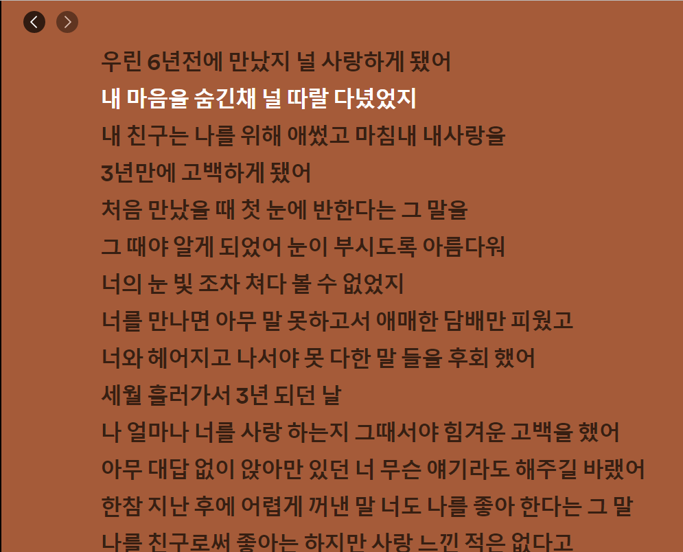 음악을 듣는 데 중요한 요소까지는 아니긴 하지만 필자같은 경우는 가사도 봄과 함께 음악을 듣는 경우도 종종 있어서 거슬리기는 합니다. 어쩌면 스포티파이가 옳은건지 헷갈린적도 더러 있었습니다.
