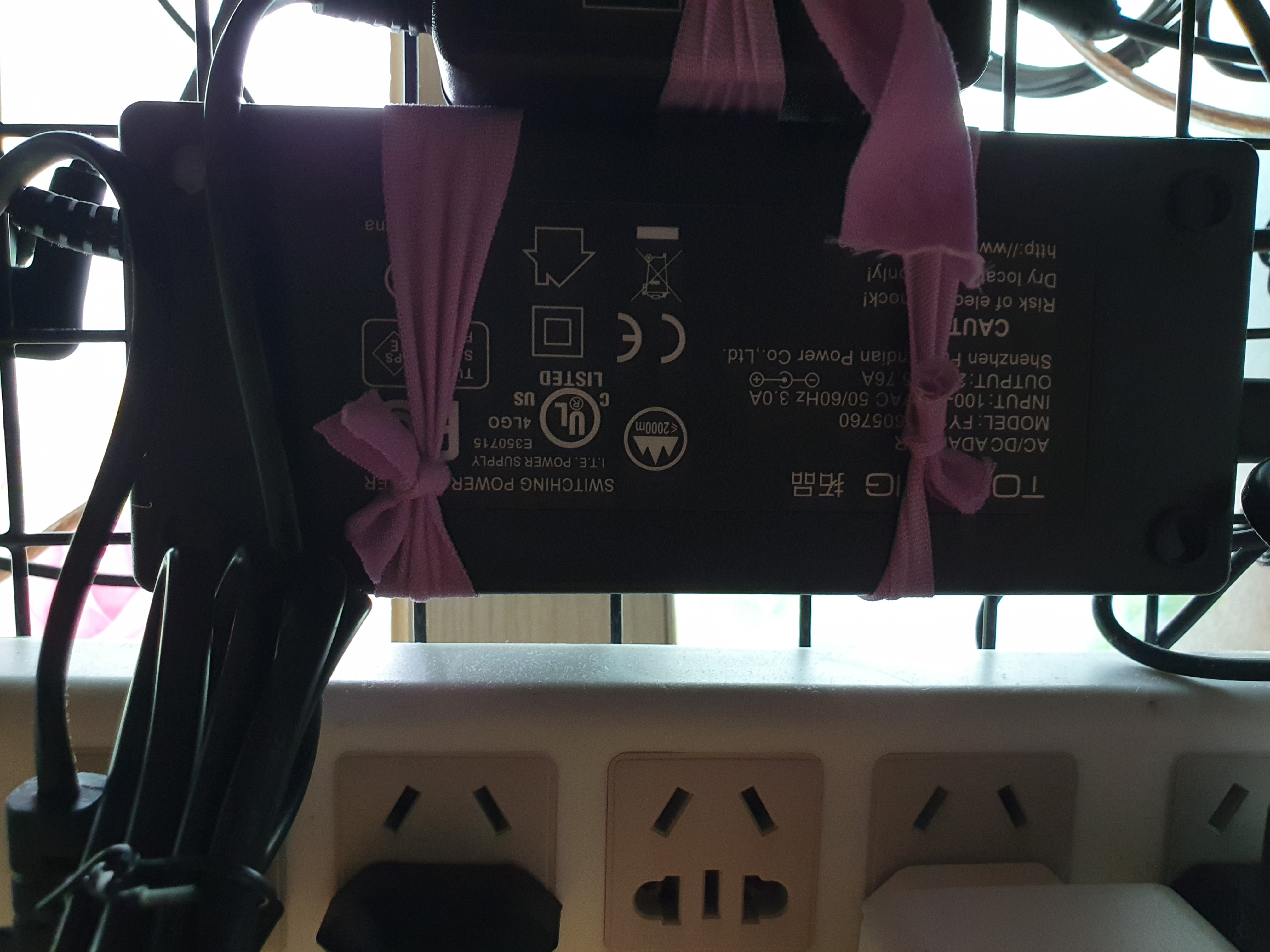 Topping PA3S의 아답터는 26V 5.76A 딱 봐도 대용량의 전력을 공급합니다. 덕분에 변압기 사이즈가 엄청나게 커서 네트망에 쓰러지지 않도록 묶어놓았습니다.