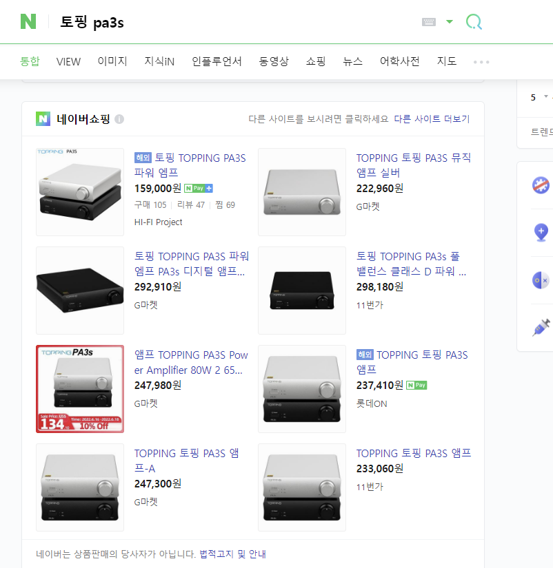 그 모델이 바로 PA3S와 PA5 등 토핑의 모델이었습니다. 처음에는 smsl AD18 올인원 앰프로 구매하려고 하였지만 저에게는 많은 기능이 필요하지 않고 이미 DAC를 별도로 구비하고 있었기에, 딱. 앰프 본연의 기능만 필요하였습니다. 그리고 홈시어터 구성할 것도 아니고 PC-Fi (데스크 파이)로 간단하고 소소하게 즐길 나에게 더 저렴한 "토핑 PA3S" 로 최종 선택하게 되었습니다.
