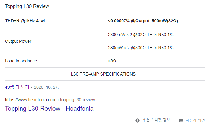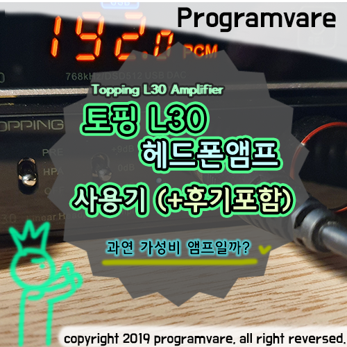 그리고 오랜기간 사용하다보니 기기를 변경하고 싶은 욕심이 개인적으로 생겼달까. 그래서 커뮤니티나 카페에서 많이 언급되고 있는 브랜드인 Topping(토핑) 중 중국 브랜드 10만원대 우수한 헤드폰 앰프로 많이 알려져 있는 토핑L30(Topping L30)을 구매하게 되었습니다.