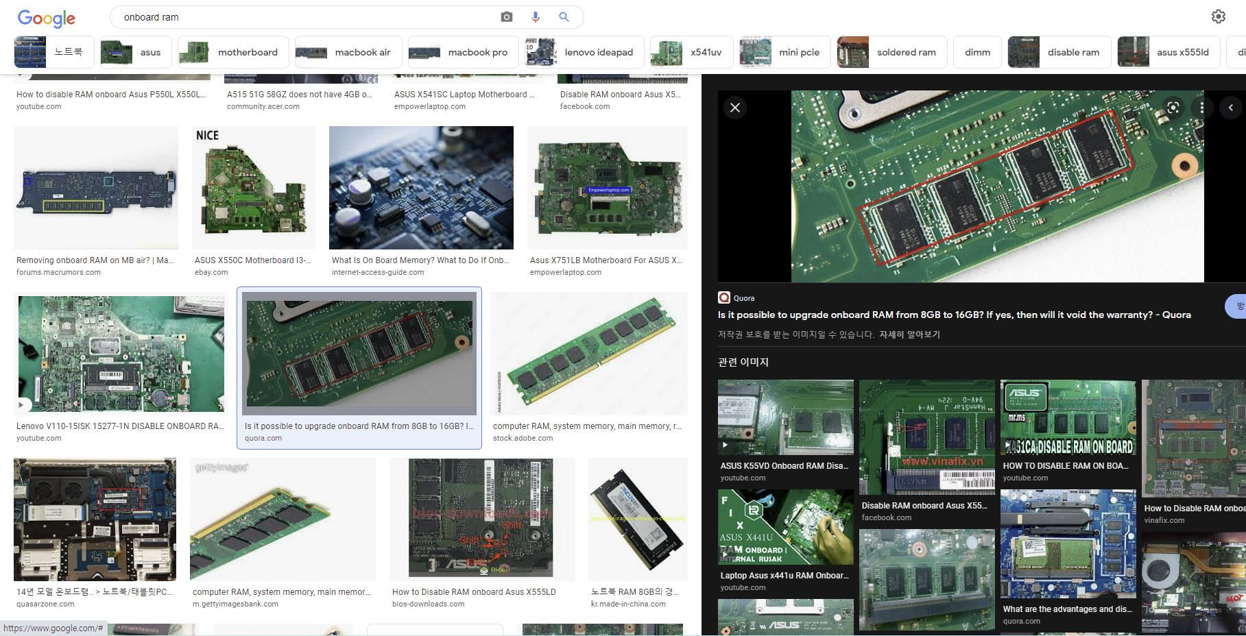 온보드 램은 메인보드에 물리적인 칩셋이 공장에서 납땜되어서 램 추가 등 자가교체 불가능한 상태로 나온 제품을 의미합니다.