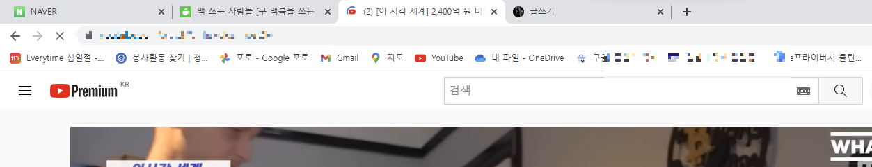 그런데 여기서 한가지 특이한 점을 볼 수 있었습니다. 작업 중 다시 크롬 브라우저의 창들을 클릭하니 현재 열어놓은 1개의 탭을 제외하고 클릭한 탭들이 저절로 새로고침 되서 인터넷으로부터 정보를 다시 받고 있었습니다.