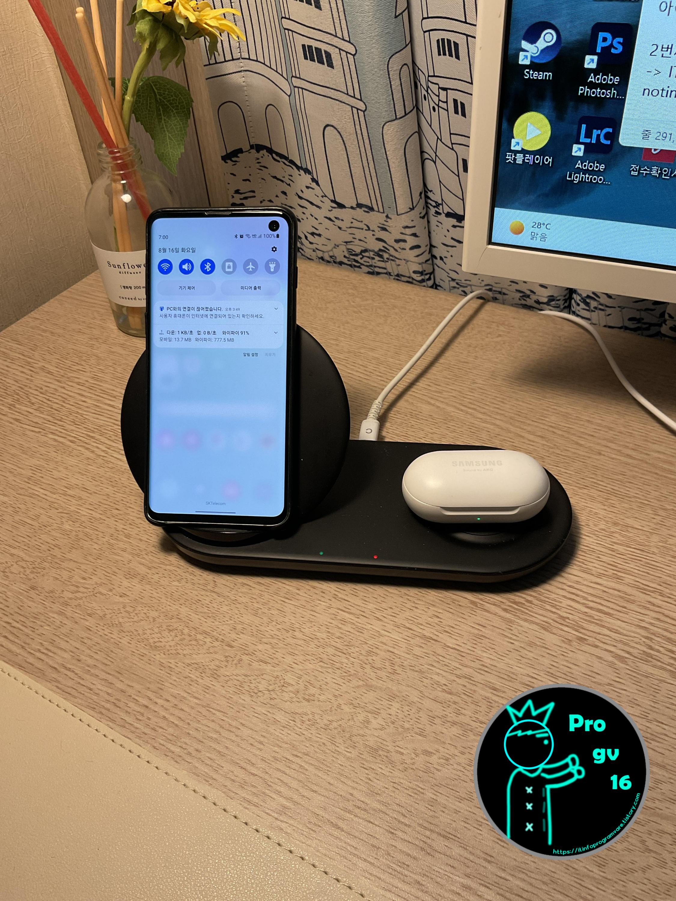 아, 물론 워치나 버즈 동시 충전 중임에도 불구하고 스마트폰 또한 무선 고속 충전으로 작동합니다. (2개 스마트폰은 실험해 보지 않아서 모르겠으나 안될 것 같습니다. 무선충전기에 최대 전력공급이 7.5w+7.5w=15w ...)