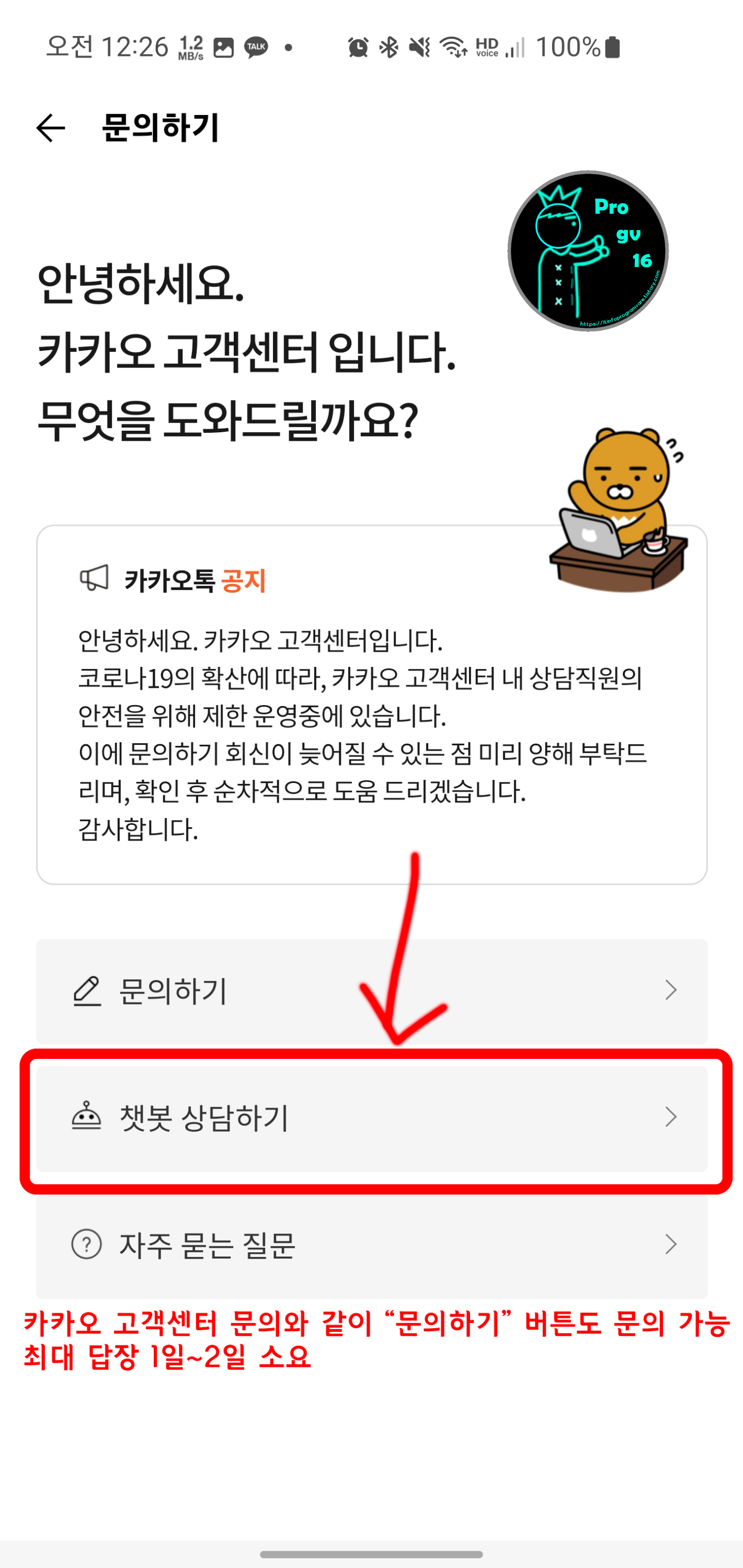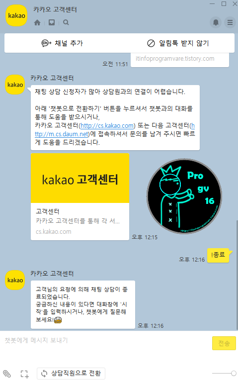 카카오톡 문의도 가능합니다. 사실 저도 빠르게 해결하고 싶어서 카카오 고객센터 톡으로 보내보았습니다.