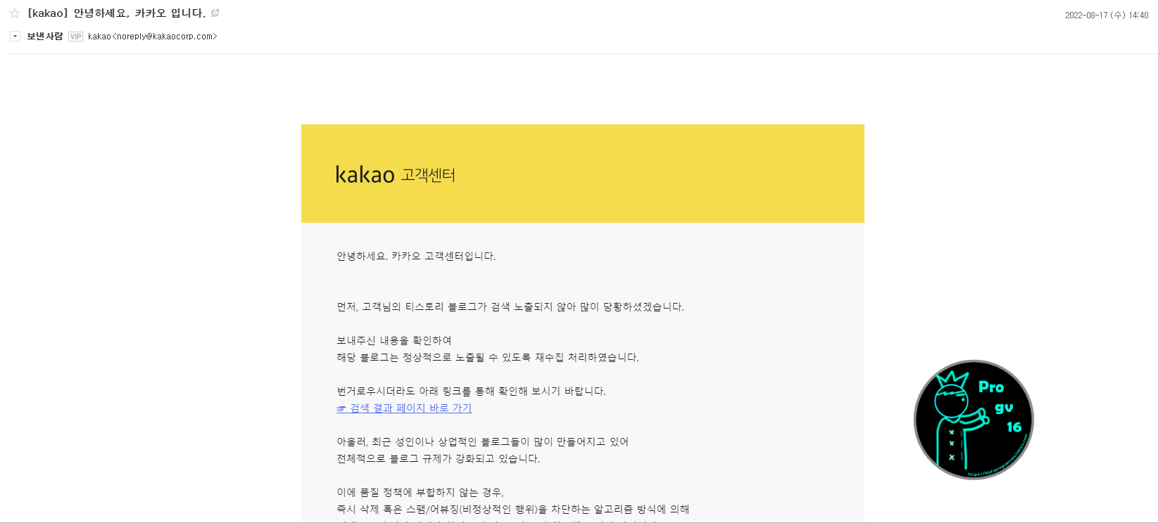 몇 년간 키워온 블로그다 보니까 괜시리 마음만 심란해지고 답변이 빨리 오기를 더 기다렸습니다. 빨리라고는 하였지만 메일은...