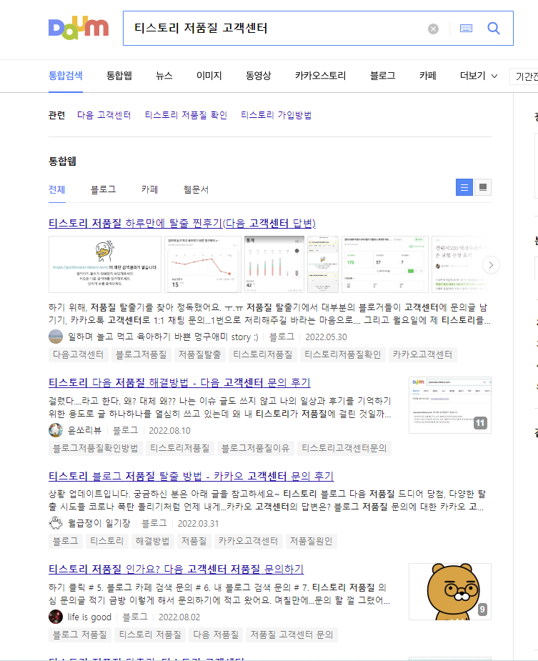 다음 검색결과에서도 다시 확인할 수 있었죠. 수 많은 포스트들이 다음에서 검색되는 모습을 보니까 그제서야 마음의 안도감이 느껴졌습니다.